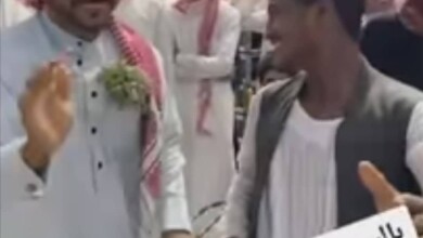 شاهد بالصورة والفيديو.. مقيم سوداني بالسعودية يحضر فرح سعودي وينظم قصيدة مدح في حق العريس ورواد مواقع التواصل (فضل ليك النقطة بالريال)