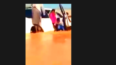 شاهد بالفيديو: لحظة حرجة ومؤثرة اثناء انقاذ اسرة حاصرتها السيول داخل عربة بالمناقل