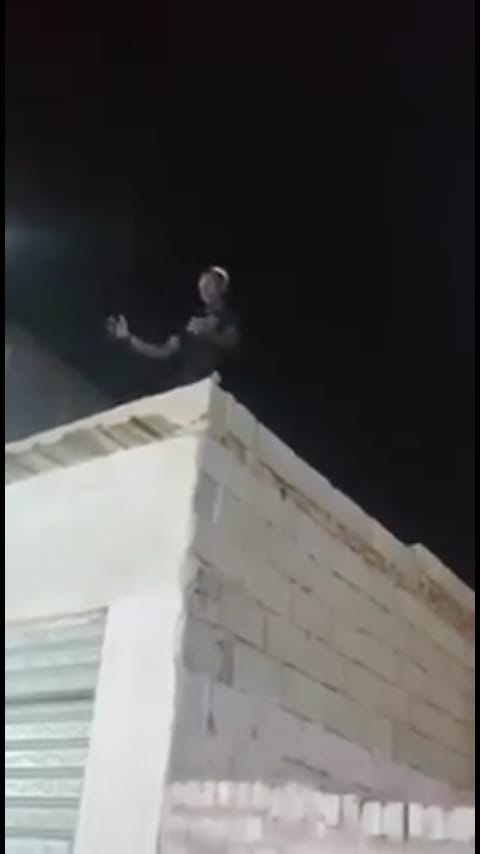 شاهد بالفيديو: (الجنون فنون) شاب يعتلي سقف منزل ويُقدم فواصل من الرقص الهستيري وساخرون (حنبنيهو رقيص )