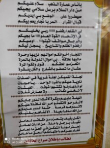 ويشهد برج الذهب المركزي بالخرطوم في الأسبوع الجاري، إحتجاجات واسعة نسبة لاعتقالات تمت من لجنة إزالة التمكين لعدد من التجار ومصدرين الذهب الذين يرفضون إحتكار محفظة السلع والصورة أدناه لملصق بحوائط عمارة الذهب يطلب من التجار التكاتف والتعاضد ضد سياسة الحكومة الإحتكارية.