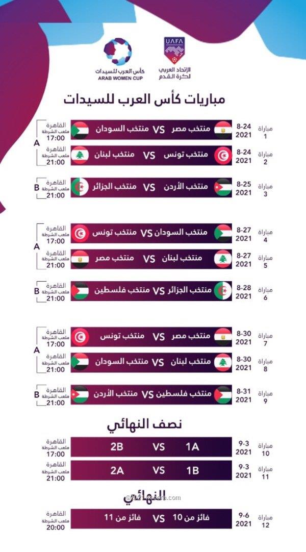 تستضيف العاصمة المصرية القاهرة، في الفترة من 24 أغسطس الجاري وحتى 6 سبتمبر المقبل، منافسات بطولة كأس العرب للسيدات 2021 في نسختها الثالثة، بتنظيم الاتحاد العربي لكرة القدم.
