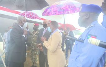 وكان في استقباله بمطار جوبا، السيدة انجلينا جاني تينج وزيرة الدفاع وشؤون قدامى المحاربين، رئيس الجانب الجنوب سوداني في الآلية المشتركة.