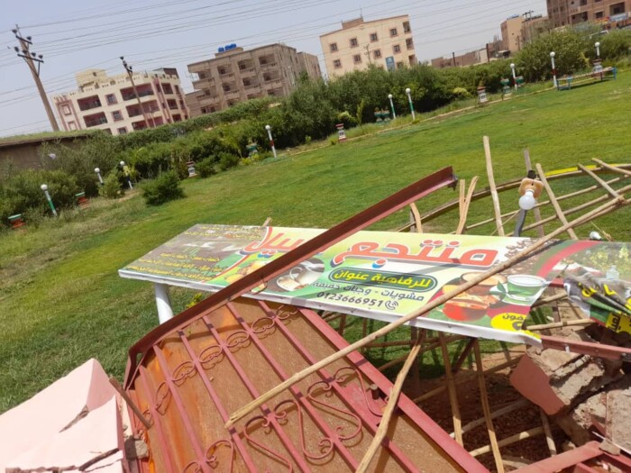 لكنه تفاجأ مثل غيره بآليات محلية شرق النيل لودرات وهي تقوم بهدم المباني الثابتة كالحمامات والمطابخ التي تم إنشاؤها داخل تلك المشاتل .