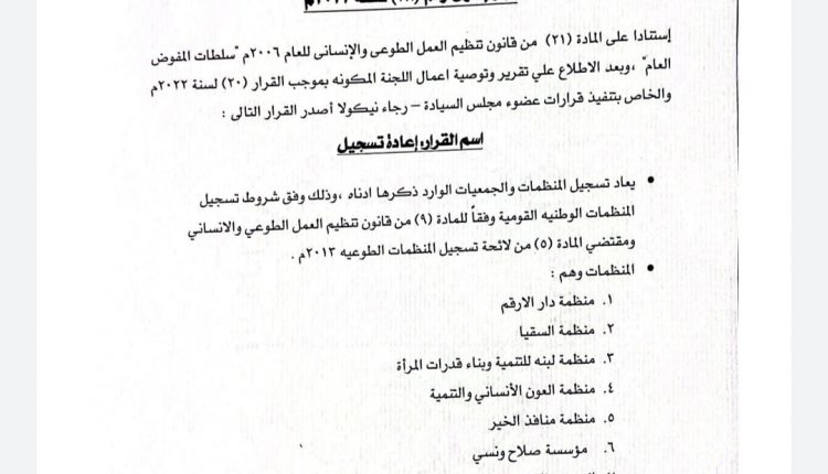 وأشارت إلى أنّ أبرز مخالفات في إجراءات تسجيل المنظمات محلّ القرار ووجود مخالفات في استقطاب وتلقي المنح من الجهات الأجنبية ووجود مخالفات في الاتّفاقيات الفنية لهذه المنظمات والمقرّرة بموجب اللوائح.