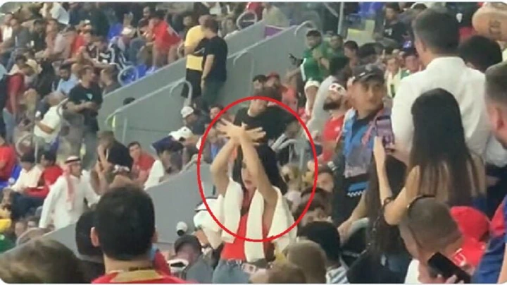 شاهدبالفيديو : لحظة طرد مشجعة في المونديال بسب حركة مستفزة