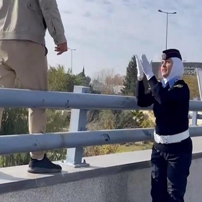 تكللت جهود ضابطة في إدارة السير المركزية في الأردن بالنجاح، بمنع شاب أردني من الانتحار بإلقاء نفسه من فوق جسر بالعاصمة عمّان.