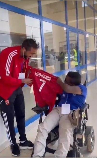وحرص جناح الزمالك واتحاد جدة السعودي السابق على التقاط صور تذكارية مع مشجع الهلال قبل أن يمنحه قميصه وسط اعجاب المشجع.