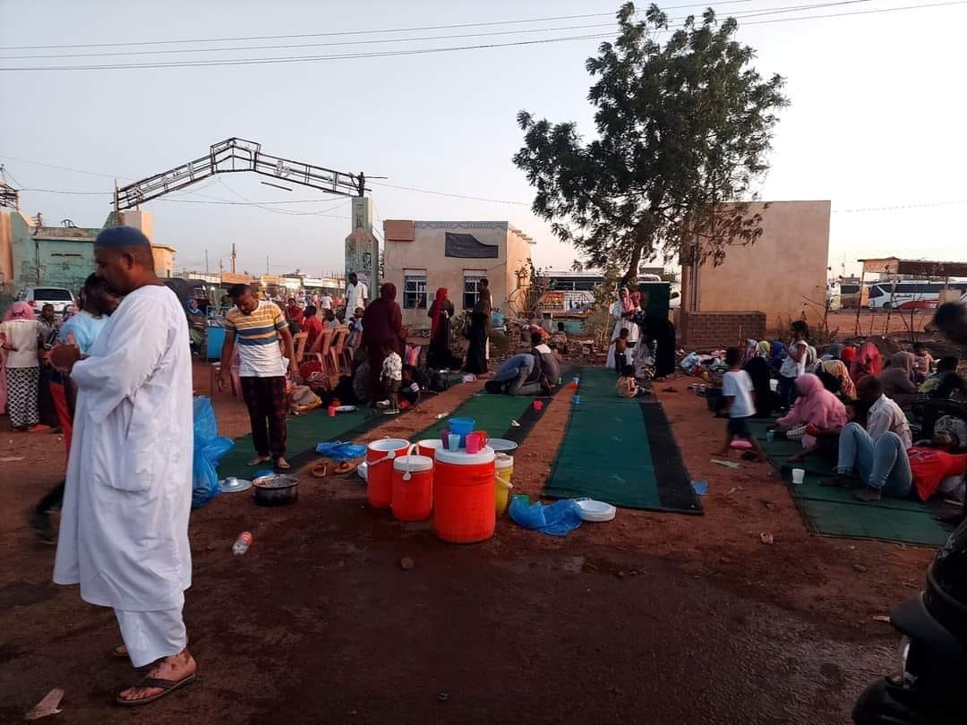 وخرج مواطنو المدينة بصواني الإفطار الرمضاني التي تم تجهيزها لإفطار مئات الصائمين الذين غادروا الخرطوم بعد حدوث الاشتباكات العنيفة بين القوات المسلحة وقوات الدعم السريع.
