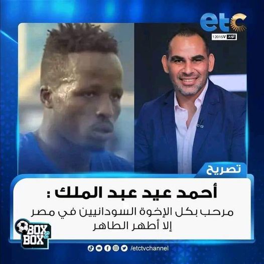 وبحسب رصد ومتابعة محرر موقع النيلين لبعض المواقع المصرية فقد قال أحمد عيد عبد الملك في تصريح ساخر قصد منه المزاح: (مرحب بكل الإخوة السودانيين في مصر إلا أطهر الطاهر).