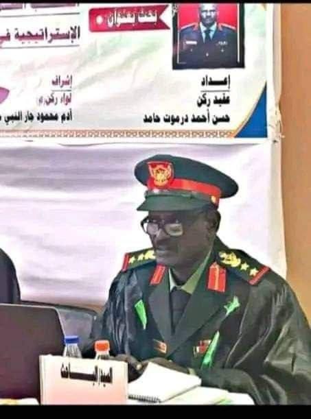 شاهد.. نشطاء ينشرون صورة لقائد بابنوسة أثناء حصوله على الماجستير: (كيف تسقط بابنوسة يا جنجا وقائدها نال درجة الماجستير في الاستراتيحية القتالية.. معناها راجيكم بل استراتيجي)