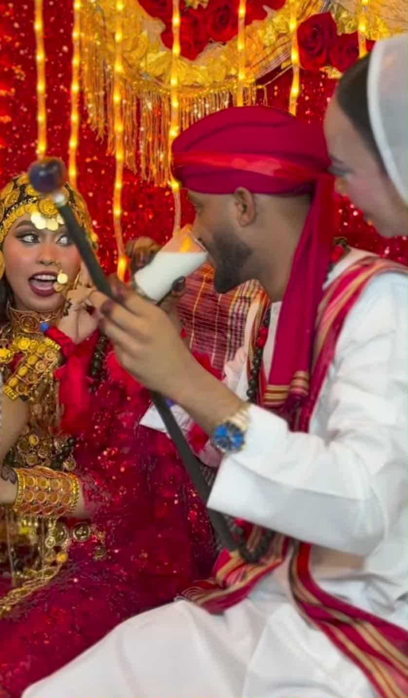 شاهد بالصورة والفيديو.. عروس سودانية ترفض “رش” عريسها بالحليب رغم إقدامه على الخطوة وتعاتبه والجمهور يعلق: (يرشونا بالنووي نحنا)